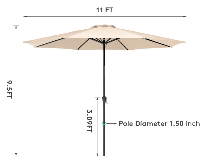 - Large and sturdy: Featuring a large 11ft diameter and 8 heavy-duty ribs, this patio market umbrella is both spacious and sturdy, ensuring reliable protection from the elements.
