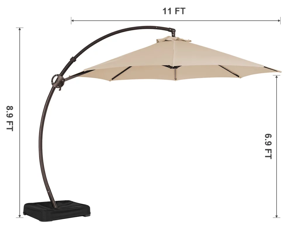 This 11ft curved offset umbrella with base features a stylish and lightweight arched design, making it perfect for pairing with outdoor seating and dining sets. The umbrella’s tilt angle can be adjusted by moving the crank, allowing for 360-degree rotation. The large 11 ft canopy and reinforced base enhance the stability and practicality of our curved offset umbrella, providing reliable shelter even in windy conditions. Elevate your outdoor space with this functional and elegant addition, designed to enhance your comfort and enjoyment during al fresco gatherings.