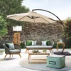 This 11ft curved offset umbrella with base features a stylish and lightweight arched design, making it perfect for pairing with outdoor seating and dining sets. The umbrella’s tilt angle can be adjusted by moving the crank, allowing for 360-degree rotation. The large 11 ft canopy and reinforced base enhance the stability and practicality of our curved offset umbrella, providing reliable shelter even in windy conditions. Elevate your outdoor space with this functional and elegant addition, designed to enhance your comfort and enjoyment during al fresco gatherings.