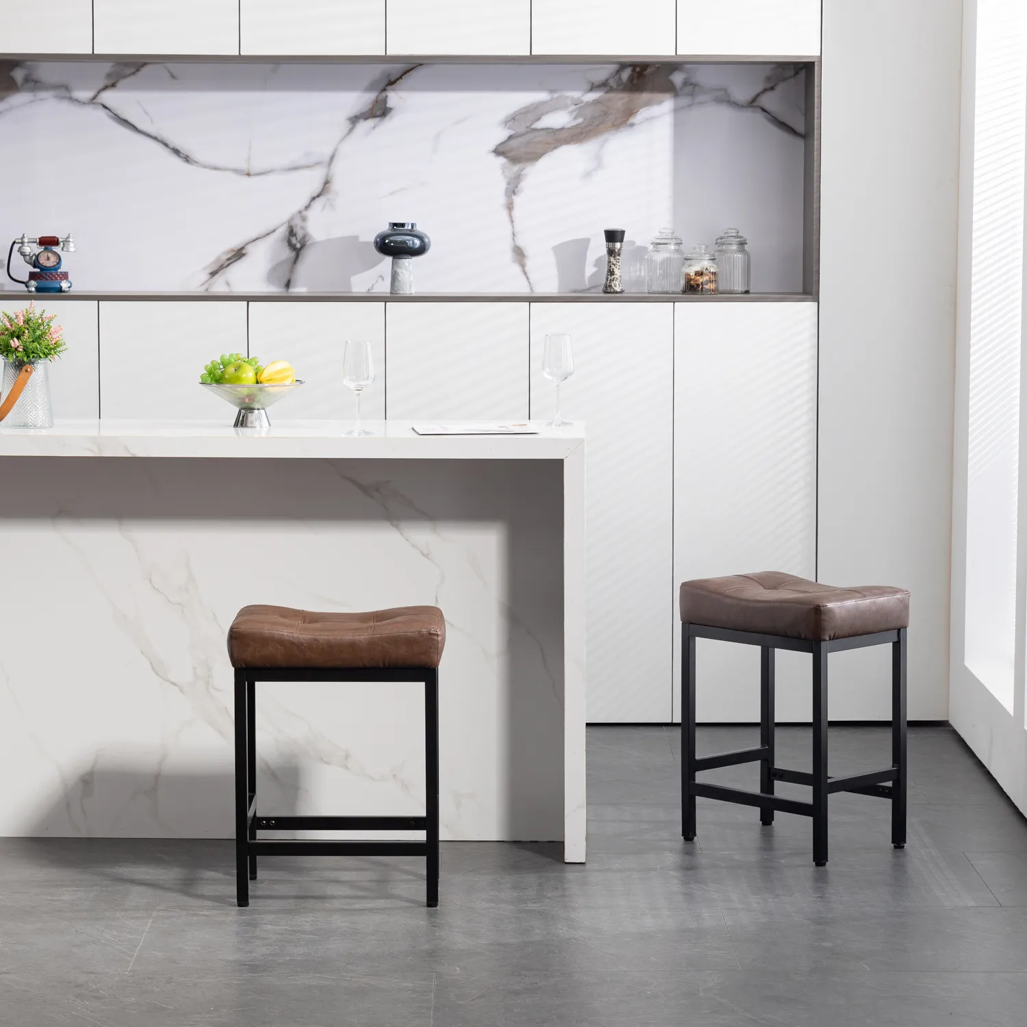 24″ Counter Height Faux Leather Kitchen Bar Stool Set of 2