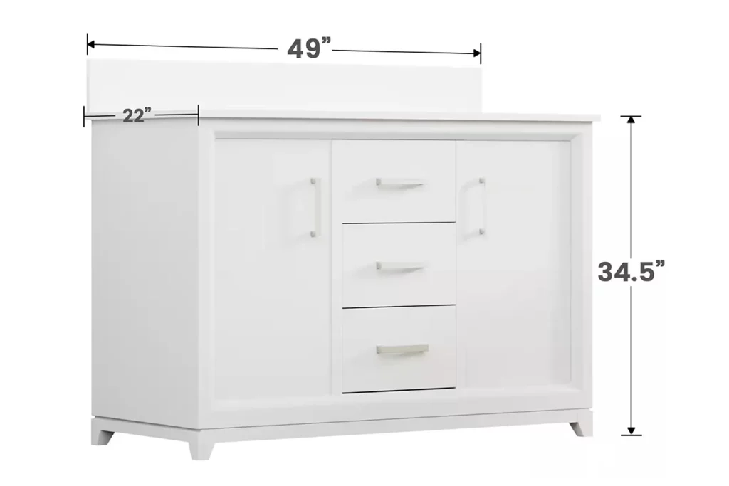 - Spacious Storage: With three drawers, two doors, and two basin areas, this 48 inch double bathroom vanity offers ample storage space for your toiletries, towels, and other bathroom essentials.