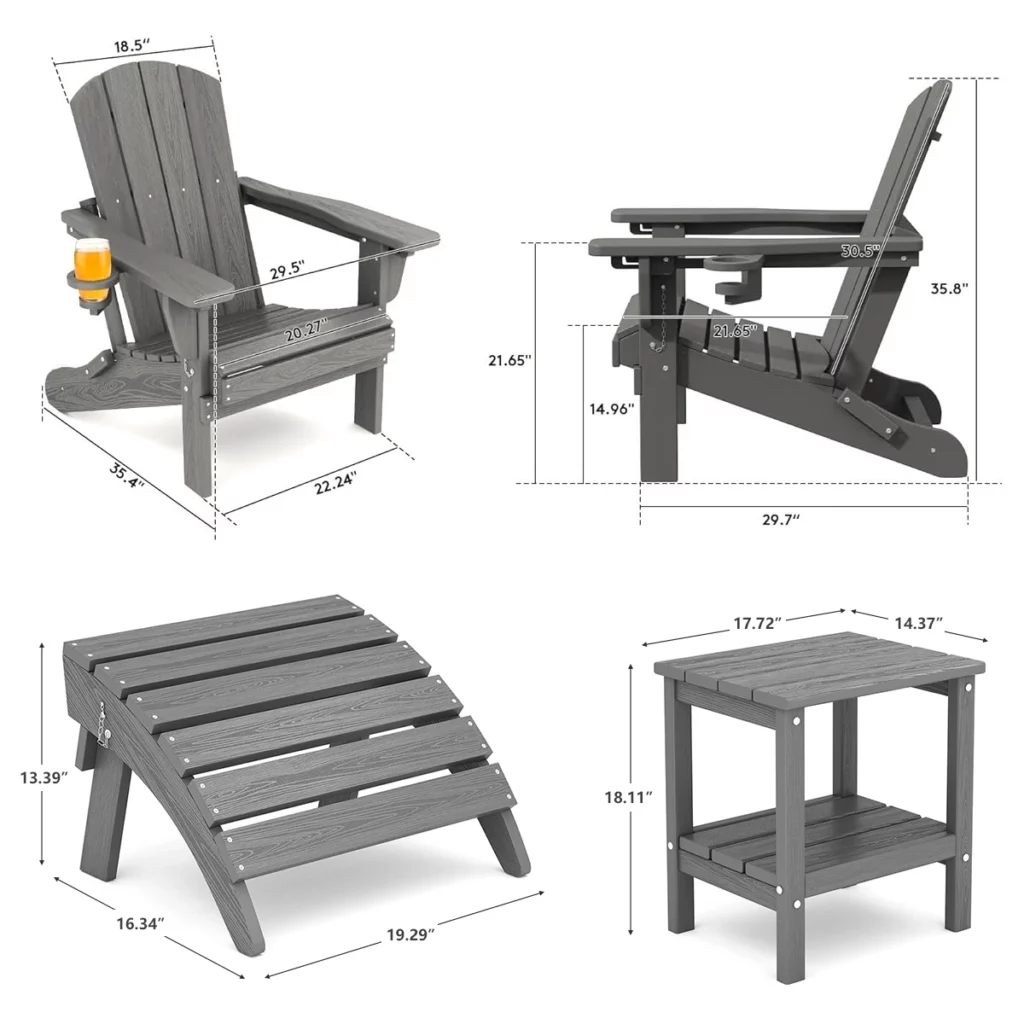 - Durable construction: Built with HIPS(High Impact Polystyrene) and attention to detail, this all weather adirondack chair set is designed to withstand the elements and provide long-lasting durability.