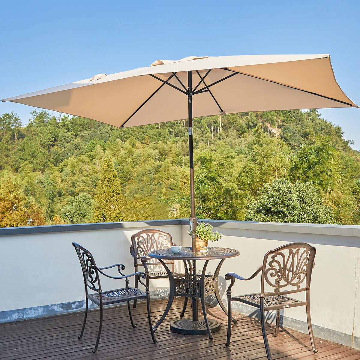 - Crank and tilt system: The crank lift system makes it easy to quickly and effortlessly open and close the umbrella, while the push-button tilting mechanism enables you to adjust the angle of the patio umbrella to ensure optimal UV protection.