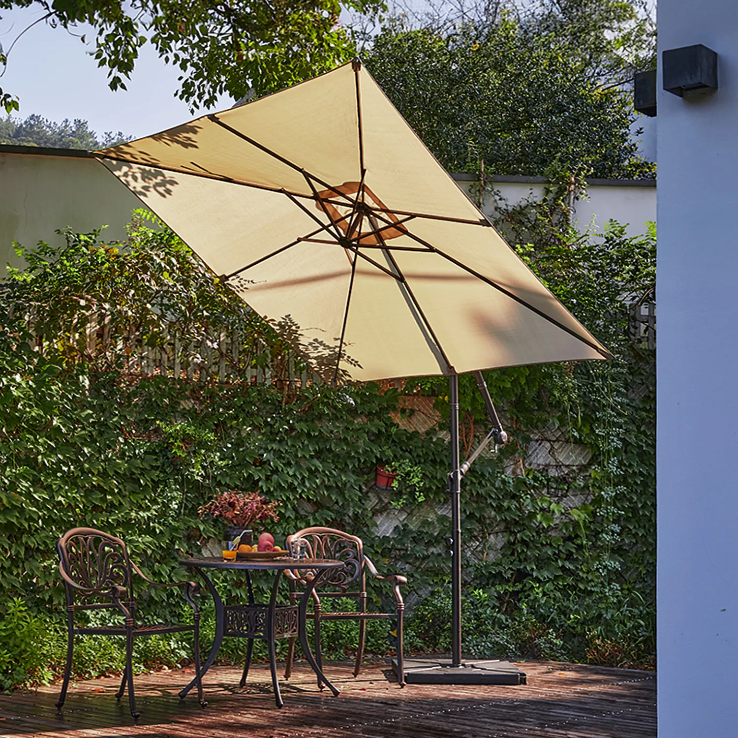 - Offset hanging design: The offset hanging design makes the umbrella more stable, the pole is thicker and larger, and the appearance is more beautiful, providing more shade coverage compared to traditional round umbrellas.