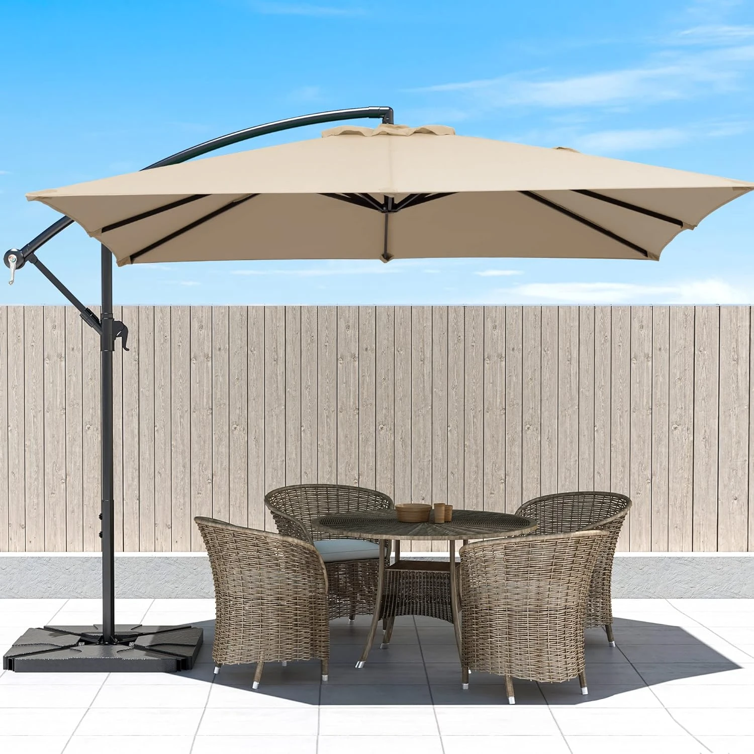 - Durable material: The square offset umbrella is made of 180GSM solution-dyed fabric with a water-repellent coating. This durable material provides UV protection and is resistant to fading, stains, and water damage.