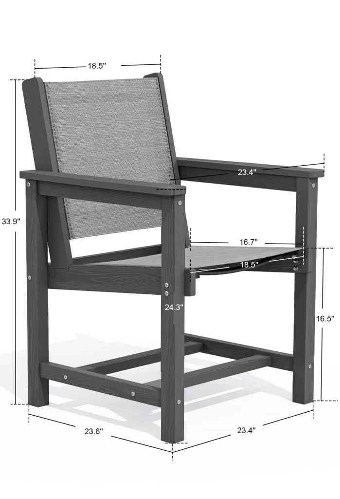 - Versatile Design: Featuring wood grain embossed HDPE panels, the mesh outdoor dining chair is aesthetically pleasing and suitable for both indoor and outdoor settings, such as patios, porches, apartments, and villas.