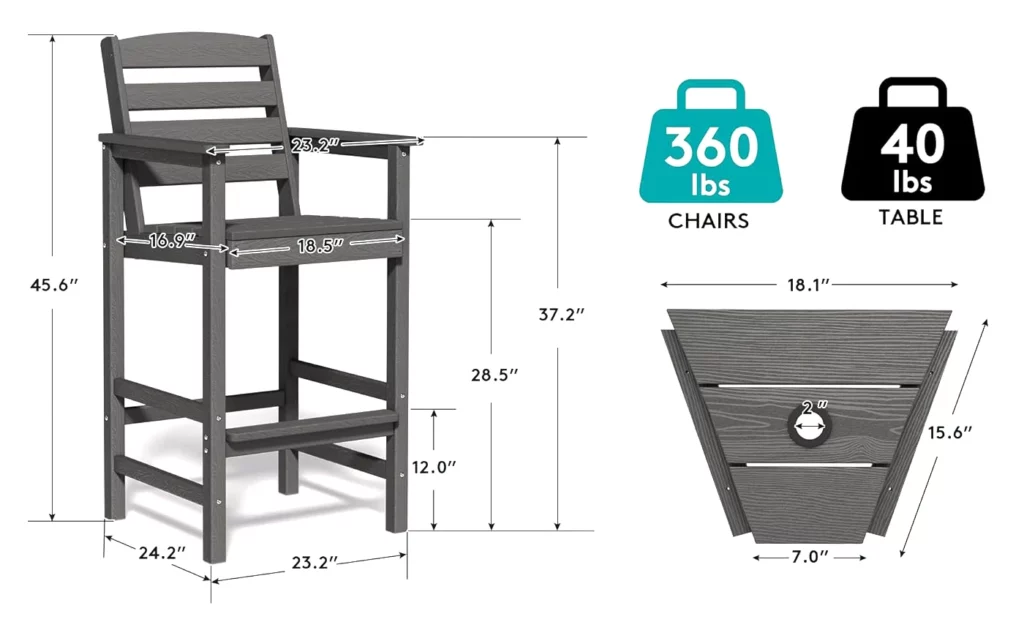 - Bar Height: The chairs stand at 28.5 inches tall, making them suitable for use with a bar table or independently in your patio setting.