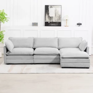 Modern Corduroy 3 Seats Sectional Sofa with Ottoman