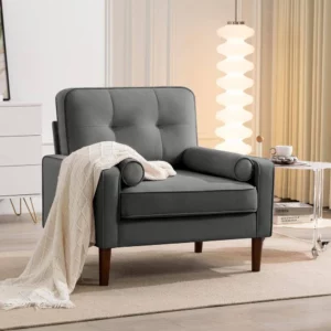 Modern Velvet Accent Armchair with 2-Throw Pillows