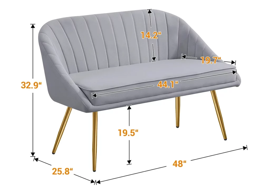 - Sturdy Construction: The velvet loveseat sofa is supported by sturdy golden metal legs with foot caps, ensuring stability and durability while adding a touch of glamour to its overall appearance.
