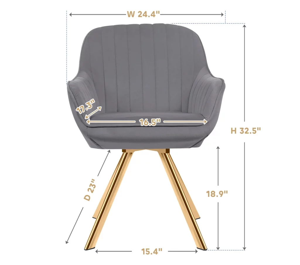 I bought this chair for my living room, and its simple, modern design really appealed to me. The gold brass base with a swivel function matches perfectly with my living room theme. The chair is soft and strong, lightweight and easy to move from room to room. Highly recommend this chair!