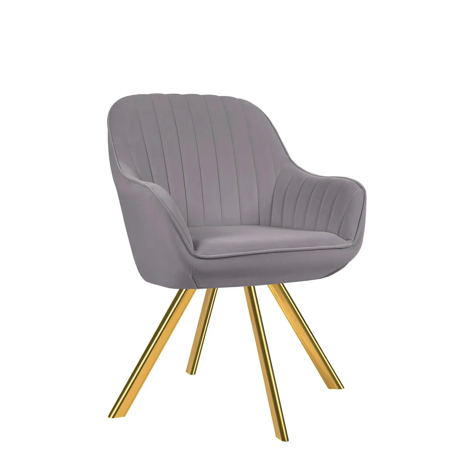 Experience comfort and functionality like never before with the modern swivel armchair. The plush brushed velvet upholstery offers a luxurious feel, while the swivel feature adds convenience and versatility. Whether you’re chatting with friends, watching TV or working at your desk, the 360-degree swivel allows you to easily turn and access different areas of your space. The sturdy gold legs not only provide stability but also complement the chair’s modern design. Elevate your living room or bedroom with this modern swivel armchair that combines comfort, style, and functionality.
