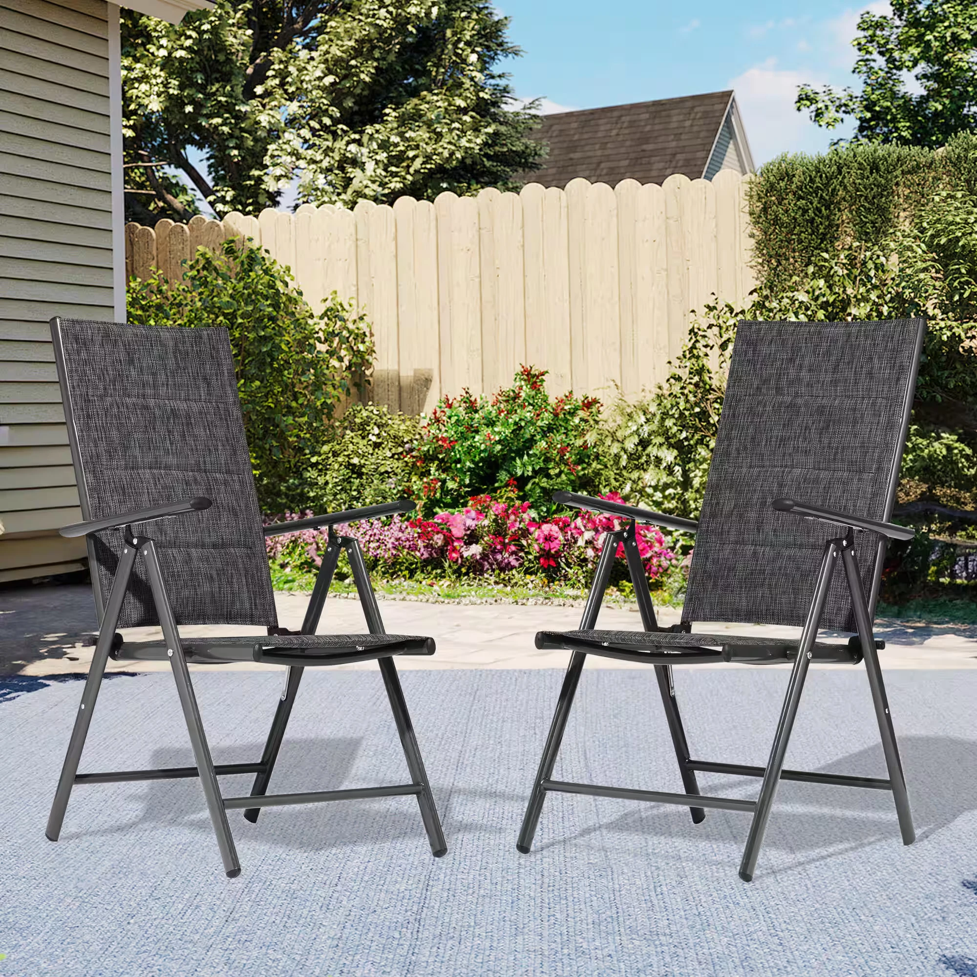 Indulge in ultimate outdoor comfort with this aluminum patio chair set. Boasting a premium solid aluminum frame capable of holding up to 400 lbs, these chairs offer exceptional stability and durability. Featuring 7 adjustable backrest positions, they cater to various seating preferences, with added comfort from soft cotton-padded seats and breathable fabric. The ergonomic design ensures a snug fit, allowing for complete relaxation while supporting the neck and head. Conveniently foldable and lightweight, they’re effortless to transport and store, fitting into cars or compact spaces with ease. With their practicality matched by easy maintenance, these aluminum patio chairs promise enduring comfort for your outdoor leisure.