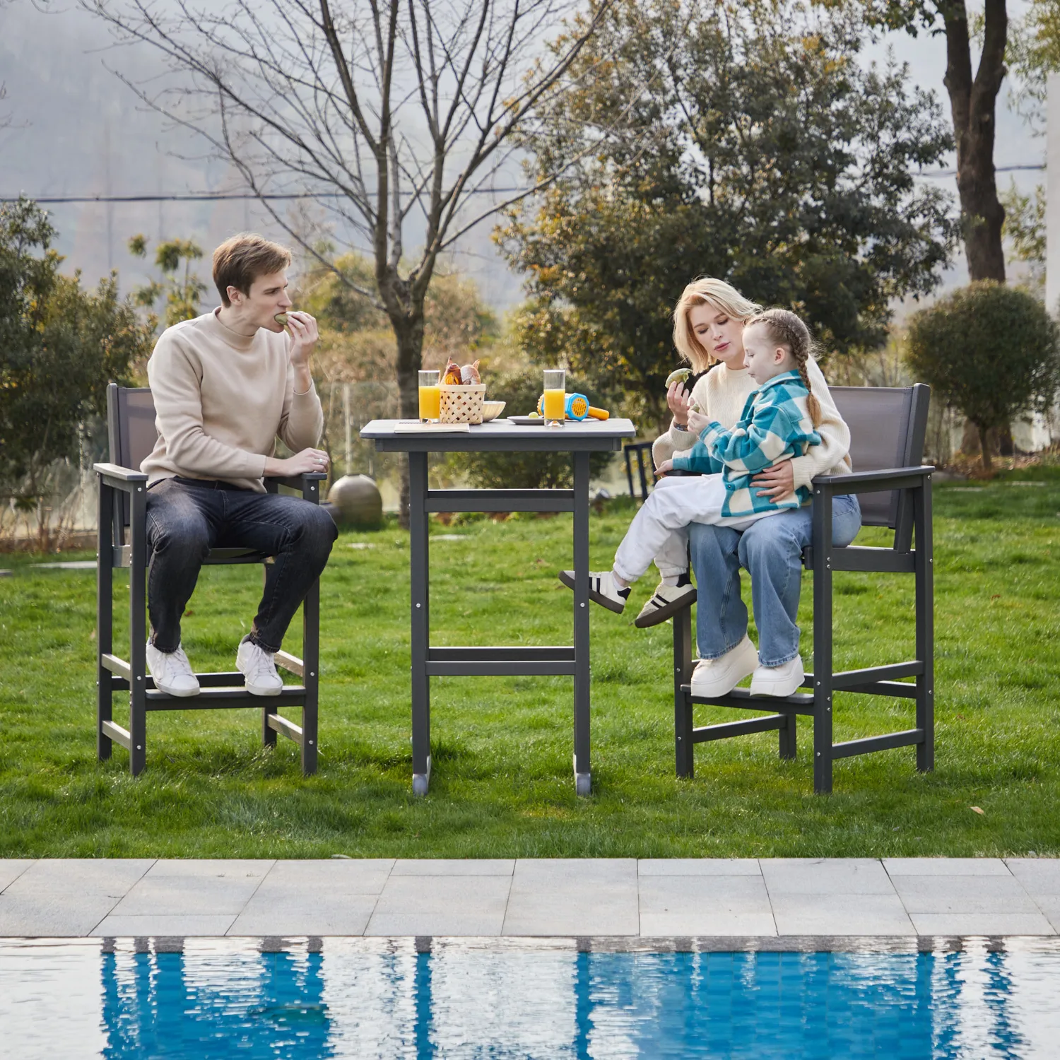 Outdoor HDPE Mesh 3-Piece Bar Height Armchair and Table Set