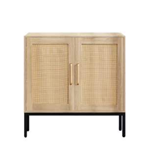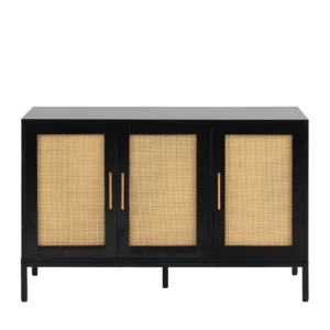 3-Door Wood Rattan Storage Sideboard with Adjustable Legs