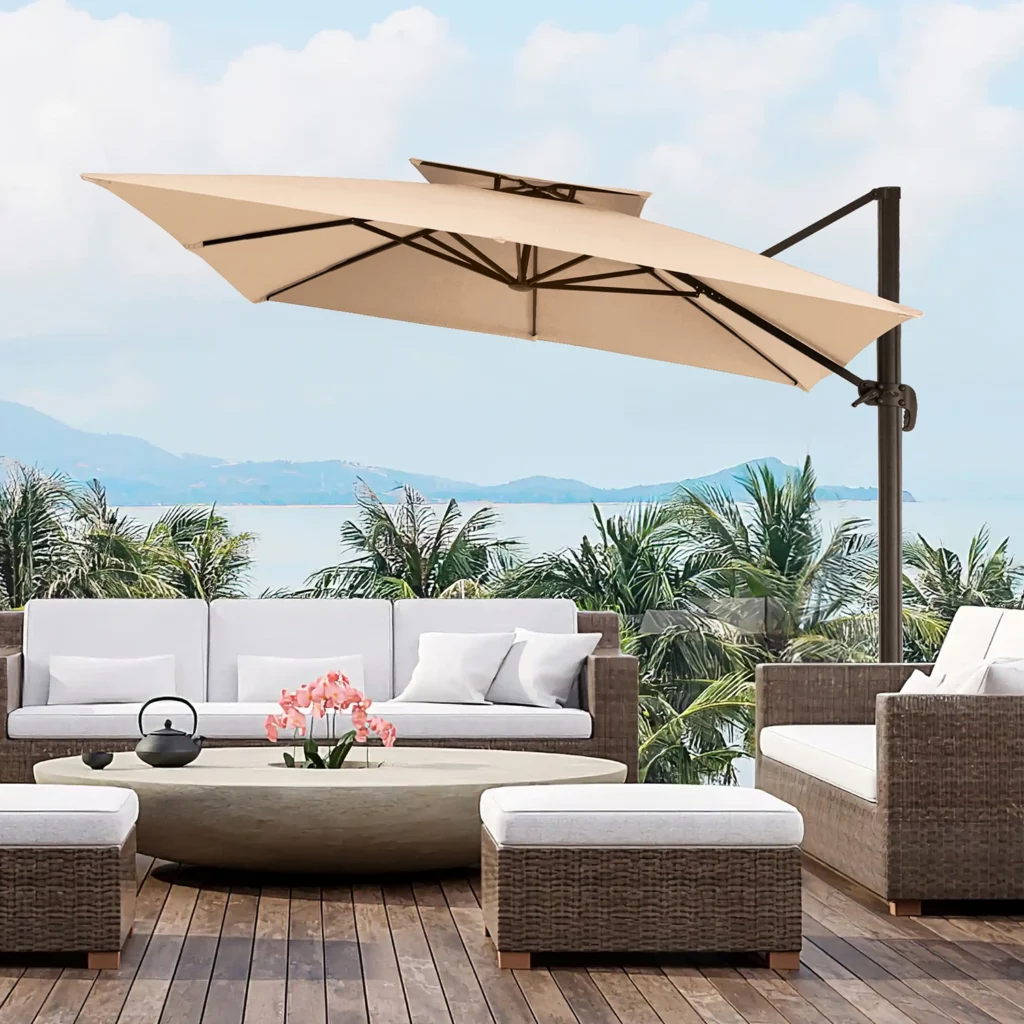 The 360-degree rotation system and infinite tilt mechanism extend the shading range of the cantilever umbrella, keeping you cool from sunrise to sunset. The umbrella height is freely adjustable, making it suitable for various occasions. We offer multiple canopy sizes, providing shade for 3-10 people.