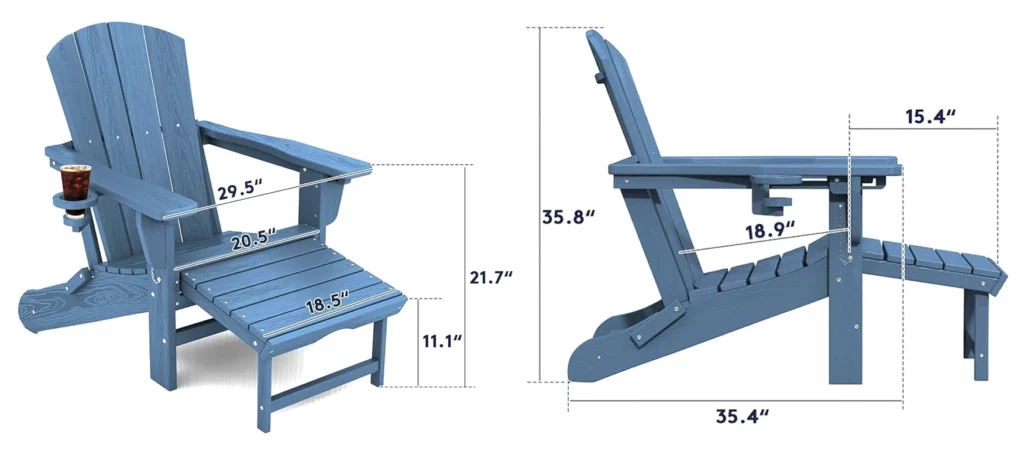 - Folding Design: The Adirondack chair with footrest boasts a folding mechanism, making it easy to store and transport.