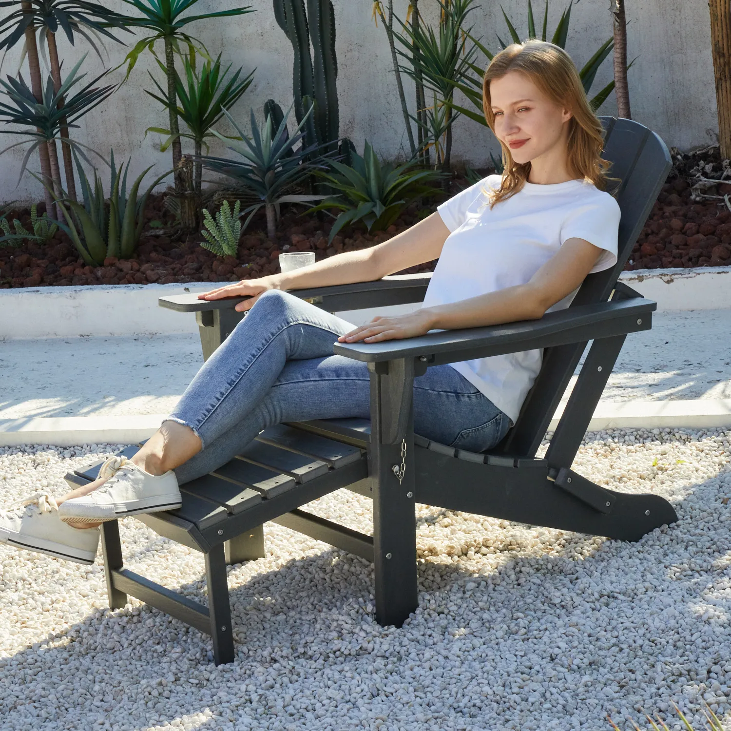 - Built-in Retractable Ottoman: Complete with a built-in retractable ottoman, this Adirondack chair offers an extended comfort experience, allowing you to fully stretch out and relax in your garden, patio, or any outdoor haven.