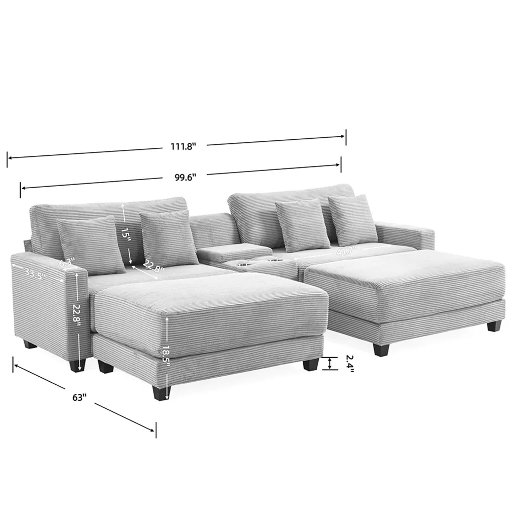 - Premium Corduroy Fabric: Crafted from premium corduroy fabric, this modular sectional sofa with ottoman is softer and more skin-friendly than polyester, ensuring a comfortable lounging experience.